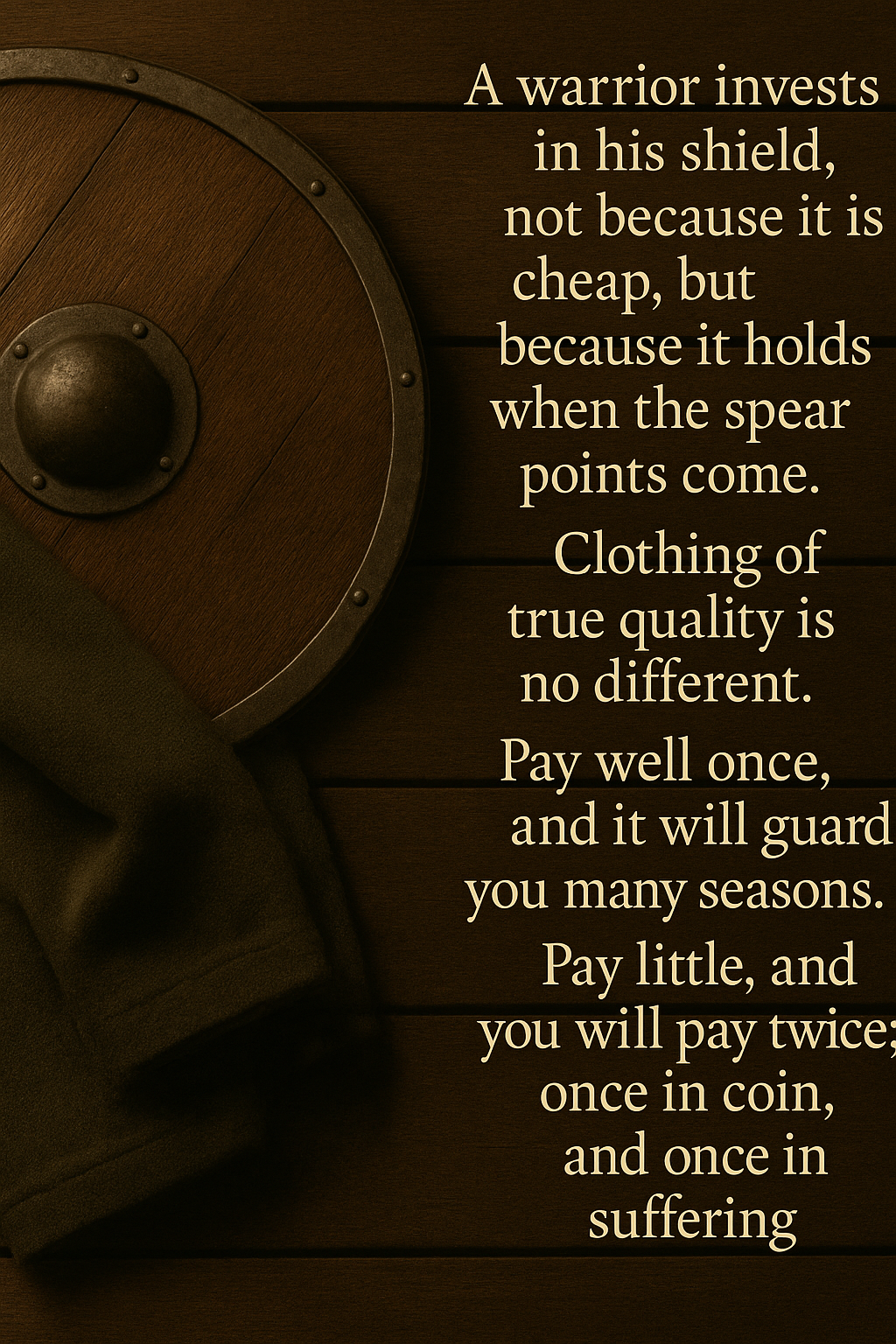 "Cheap clothes cost the most. They fail when you need them, they make you buy twice, and they leave you cursing yourself in the rain. The truth is simple: quality gear pays you back every time you wear it. That fleece that still insulates after years of campfire smoke. Those trousers that shed rain after a hundred miles of trail. That jacket that makes you forget the weather entirely. You’re not buying fabric… you’re buying freedom, confidence, and durability that puts money back in your pocket long-term."